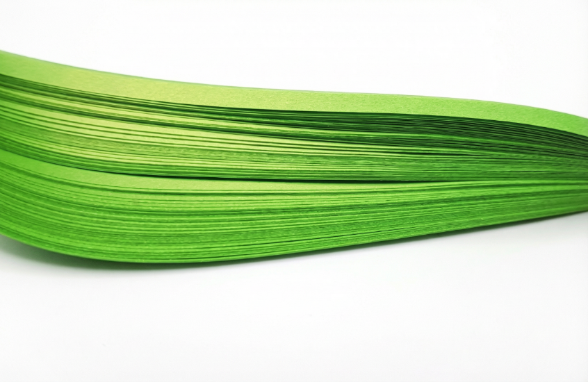 A pack of quilling paper strips in pearlescent / metallic green
