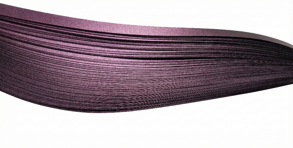 A pack of quilling paper strips in pearlescent / metallic purple